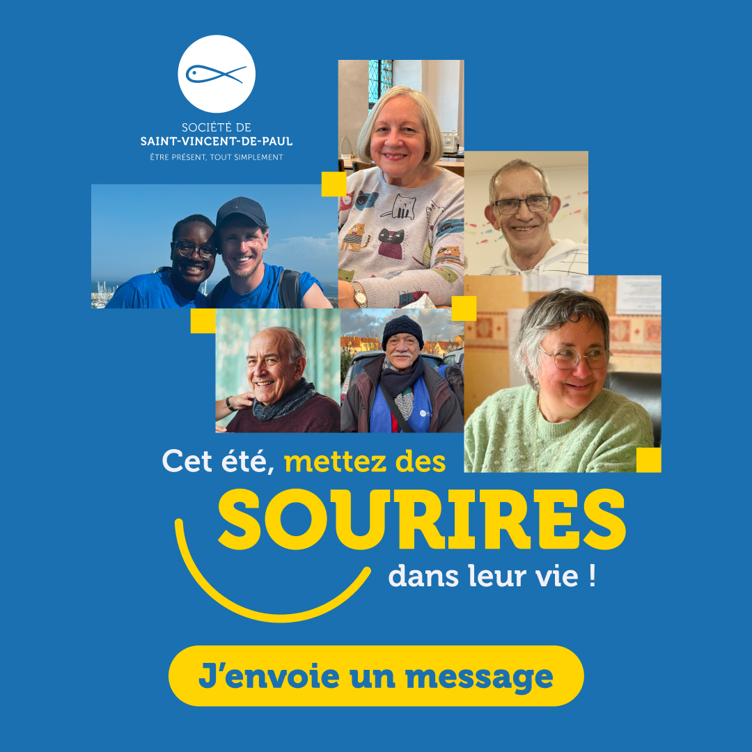 Votre dose mensuelle de fraternitĂ© - juillet 2025 | | đź’™ Avec 17 000 bĂ©nĂ©voles et plus de 800 Ă©quipes locales partout en France, la SociĂ©tĂ© de Saint-Vincent-de-Paul agit au plus près de ceux qui en ont besoin. 🤝 Chaque jour, nos bĂ©nĂ©voles tissent du lien et apportent un soutien concret aux personnes fragiles ou isolĂ©es. ✨ Et si vous rejoigniez l’aventure près de chez vous ? | | | | | Souriez, partagez, Ă©coutez | | Contre la solitude : partagez un sourire ! | | Depuis sa fondation, en 1833, la SociĂ©tĂ© de Saint-Vincent-de-Paul lutte contre l’isoleÂment des personnes. La pĂ©riode estivale est souvent un moment très difficile pour les personnes seules. Les bĂ©nĂ©voles sont toujours attentifs Ă ne pas laisser des personnes isolĂ©es, ils organisent des visites Ă domicile, proposent des sorties de loisirs ou culturelles et ouvrent leurs locaux pour que chacun puisse passer un moment chaleureux. Vous aussi vous pouvez contribuer Ă briser cet isolement : envoyez des messages aux personnes qui souffrent de solitude. En quelques clics, choisissez une image, rĂ©digez votre message et envoyez-le. La SociĂ©tĂ© de Saint-Vincent-de-Paul proposera de le faire parvenir, via ses Ă©quipes locales, Ă une personne isolĂ©e. Partagez Ă©galement l’opĂ©ration autour de vous. Plus il y aura de messages, plus il y aura de personnes isolĂ©es touchĂ©es. | | Et vous, que souhaitez-vous transmettre ? | | Une belle vidĂ©o sur la transmission a vu le jour en partenariat avec Grand Mercredi, le mĂ©dia dĂ©diĂ© aux grands-parents. En quelques minutes, elle explique avec simplicitĂ© comment chacun peut librement choisir de transmettre une part de son patrimoine, mĂŞme modeste, Ă une cause qui lui tient Ă cĹ“ur. Martine Destivelle, notre responsable des relations avec les testateurs y rappelle la libertĂ© de ce geste, et la prĂ©sidente d’un Accueil Sourire tĂ©moigne de l’impact concret que peut avoir un legs : l’un d’eux a permis d’ouvrir un lieu chaleureux pour les plus dĂ©munis, oĂą l’on Ă©change quelques mots autour d’un cafĂ© et oĂą renaissent peu Ă peu la dignité… et le sentiment d’exister. Transmettre, ce n’est pas seulement partager des biens matĂ©riels ; c’est aussi faire vivre ses valeurs. Un retour ? Une question ? Martine Destivelle, notre responsable des relations testateurs est Ă votre Ă©coute au 01 73 73 49 99 ou par mail Ă martine.destivelle@ssvp.fr . Vous pouvez aussi demander une brochure. | | | | | | | | Ensemble, visiter un musĂ©e | | En juin dernier, dans les Hauts-de-Seine (92), les bĂ©nĂ©Âvole et personnes accomÂpaÂgnĂ©es de VaucresÂson, CourÂbeÂvoie et ChâteÂnay-MalaÂbry ont visitĂ© le musĂ©e d’art moderne de Paris. Ensemble, ils ont pu admirer l’exposition Matisse et Marguerite et dĂ©couvrir les Ĺ“uvres. Pour certains, c’était la première sortie au musĂ©e ! La sortie culturelle s’est achevĂ©e par un dĂ©jeuner partagĂ© dans la bonne humeur. Cette sortie culturelle a Ă©tĂ© rendue possible par le soutien de la fondaÂtion photo4Âfood. | | | | | ​👋​ Donnez... de votre temps ! Le bĂ©nĂ©volat est une richesse, les bĂ©nĂ©voles de notre rĂ©seau tĂ©moignent de leur joie de servir l’autre et de rendre la sociĂ©tĂ© plus fraternelle. Ce mois-ci, pour notre dĂ©fi, nous vous proposons de donner un peu de votre temps : Ă votre voisin isolĂ© qui a besoin d’aide pour des courses, cette dame du quartier qui ne voit personne, le parent dĂ©bordĂ© qui a besoin de souffler... Et si le cĹ“ur vous en dit, rejoignez une Ă©quipe locale près de chez vous ! đź’ˇAstuce : DĂ©couvrez la beautĂ© du bĂ©nĂ©volat en Ă©coutant Maxence, de Paris. Ce jeune bĂ©nĂ©vole vous raconte les maraudes et les rencontres prĂ©cieuses qui le touchent au coeur de la rue dans notre podcast Un CafĂ© avec... la SociĂ©tĂ© de Saint-Vincent-de-Paul. | | | | | Près de chez vous ! 📍 L'actualitĂ© des Ă©quipes la SociĂ©tĂ© de Saint-Vincent-de-Paul c'est par ici. 📱 On bouge aussi sur les rĂ©seaux sociaux, connaissez-vous notre compte TikTok? | | | | | Près de chez vous, les bĂ©nĂ©voles des Ă©quipes locales agissent au plus près pour aider les familles en difficultĂ©. Votre don permet de financer des actions de proximitĂ©, vous pouvez aussi rejoindre une Ă©quipe locale. | | La SociĂ©tĂ© de Saint-Vincent-de-Paul est reconnue par le Don en Confiance, organisme de contrĂ´le des associations et fondations faisant appel aux dons. La SociĂ©tĂ© de Saint-Vincent-de-Paul s’engage Ă respecter ses principes de transparence et d’efficacitĂ©. Pour plus d’infos : www.donenconfiance.org | | | | | | | | | |